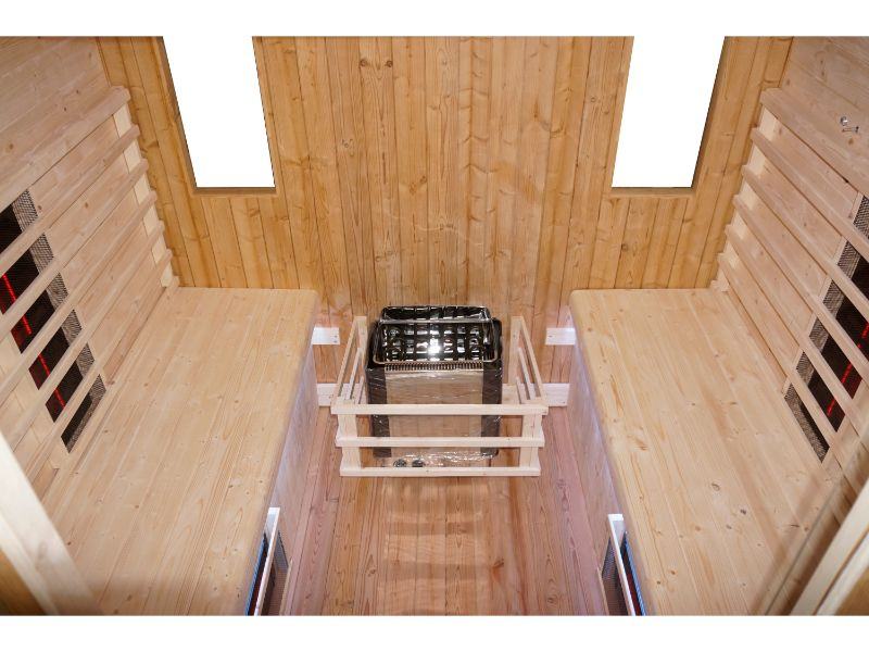 Uživajte u savršenstvu wellness iskustva s našom vanjskom kombiniranom saunom koja objedinjuje finsku i infracrvenu saunu u jednom. Ova sauna je idealna za sve koji traže maksimalnu udobnost i terapeutske prednosti.